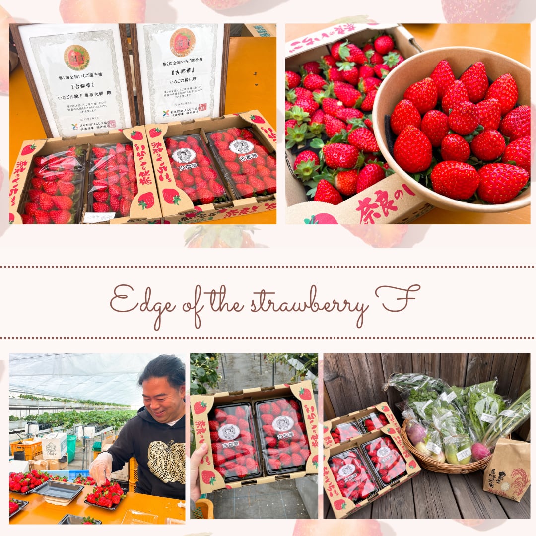 奈良を代表するオリジナルのいちごを化学農薬をなるべく使わないように、日々研究し、栽培を工夫しながら甘いいちごを栽培しています。また、「古都華」は野菜ソムリエ協会のいちご選手権で賞を2回獲得。